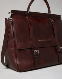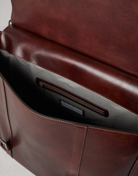 The excellence of Brunello Cucinelli leathers defines the sophisticated and retro-inspired style of this calfskin Casual briefcase. The material’s natural grain and its uneven coloration make each piece unique. The large flap closure with adjustable buckles protects the accessory, which features small pockets and three expandable compartments, ideal for storing documents, a laptop, a tablet and all the essentials. MATERIALS Lightweight and soft, the calfskin leather showcase a slight natural grain that enhances the season’s colors. The finish and the special coloring give the leather a mild light and dark effect with a vintage feel with shading and unique details in each style. DETAILS Magnetic snap closure Adjustable and detachable shoulder strap Handle Outside zipper pocket Water-resistant fabric lining 2 open internal compartments Internal compartment with magnet Internal document pocket All metal parts are Nickel-free Bag is 48 cm (18,90") long, 21 cm (8,27") wide and 52 cm (20,47") high REAL LEATHER