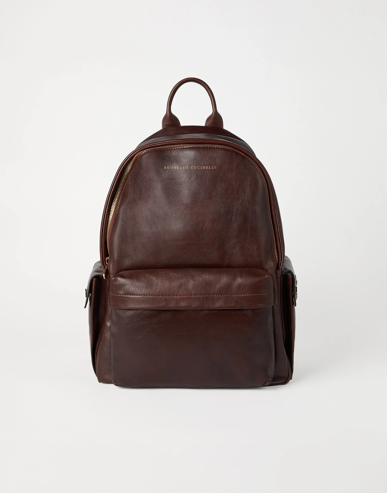 A versatile accessory that is perfect for moving around the city or travel, this backpack marries functional design with refined materials. The particular smooth, polished texture of calfskin is perfect for adding depth and character to the accessory’s elegant coloring. On the outside, two small side pockets with magnetic closures and a front zipper pocket allow you to always have your essentials within reach. A strap on the back allows you to attach the backpack to a trolley to make transport easy. MATERIALS Lightweight and soft, the calfskin leather showcase a slight natural grain that enhances the season’s colors. The finish and the special coloring give the leather a mild light and dark effect with a vintage feel with shading and unique details in each style. DETAILS Zip closure Adjustable shoulder straps Handle Outside zipper pocket Side pockets with magnetic snaps Water-resistant fabric lining Internal compartment with zipper Strap on back for attaching to trolley handle All metal parts are Nickel-free Accessory is approx. 31 cm (12,20") long, 43 cm (16,93") high and 18 cm (7,09") wide REAL LEATHER