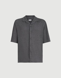 Fluid lines and a versatile attitude define the silhouette of this short sleeve shirt, a must-have summer menswear piece. The linen and cotton jersey is light and crisp, enriched by the natural yarn’s distinctive slubbing and irregular coloring. The silhouette offers comfortable, regular proportions, completed by the wide camp collar. MATERIALS The linen and cotton jersey combines the best properties of the natural fibers in a light blend that is perfect for the summer. The linen provides the yarn’s distinctive freshness, while the cotton adds a soft, fluid touch. The delicate slubbing enhances the fabric’s melange effect. DETAILS Plain front closure with mother of pearl buttons Camp collar Regular fit 74% LINEN, 26% COTTON