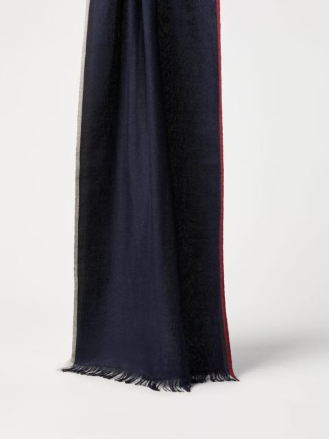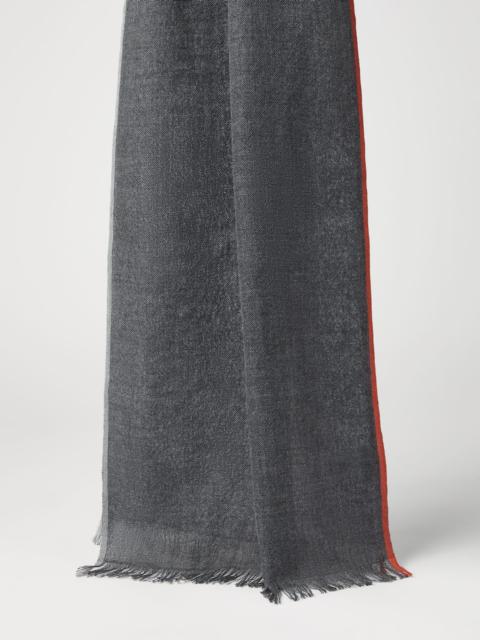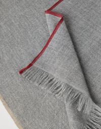 The ultra lightweight cashmere and cotton yarn showcases a slight nuanced effect that enriches the season’s colors. The detail along the edges resembles the effect of selvedge and introduces a small color accent that contrasts with the base. MATERIALS The ultra-lightweight cashmere and cotton yarn is enriched with the season’s nuances. The detail along the edges resembles the effect of selvedge and introduces a small color accent that contrasts with the base. DETAILS Scarf measures approx. 35 cm x 135 cm 70% CASHMERE, 30% SILK