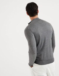 The versatile and timeless feel of this cardigan is paired with the precious qualities of cashmere and silk. The yarn’s plush and ultra lightweight texture showcases the iconic colors of the Menswear collections, which stand out thanks to the contrast color used for the die-cast zippers and the edges of the rib-knit cuffs. Its fit is characterized by its regular, comfortable proportions. MATERIALS Single-ply manufacturing of the cashmere and silk yarn brings out the qualities of the natural fibers and provides lightness and comfort. The garment takes on a balanced weight which is very pleasant to wear. DETAILS Two-way zip closure High collar in rib knit Rib knit cuffs and bottom band Plain stitch 70% CASHMERE, 30% SILK