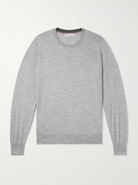 Dubbed the 'king of cashmere', Brunello Cucinelli has transformed the way we shop for knitwear. This sweater has been knitted from the soft yarns and plenty of silk in Solomeo, Italy – where all the label's collections are produced – and designed to be worn fitted. It's tipped with black trims for a subtle contrast. Size & Fit - Fits true to size. Take your normal size - Designed for a regular fit - Fine knit - Model is shown wearing an IT 48 - Model measures: chest 38"/ 96cm, height 6'0"/ 183cm Details & Care - Grey melange and black cashmere and silk-blend - 70% cashmere, 30% silk - Hand wash