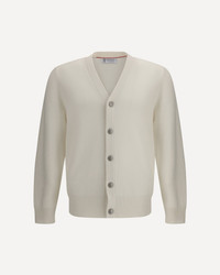 Brunello Cucinelli's cashmere Cardigan is a sophisticated and luxurious piece featuring a front button closure that adds a classic touch. Ribbed cuffs, a V-neck with ribbed piping, and a high ribbed hemline ensure a snug fit and an elegant look. The monochrome pattern gives the cardigan a clean and versatile look, perfect for easy pairings with a variety of outfits. With a regular fit, this cardigan is ideal for a refined and comfortable look. DETAILS - Sku: M22707006_CO312 - Season: AW25 - Fit: Regular - Composition: GENERAL 100% Kashmir/capra Hircus - MADE IN ITALY