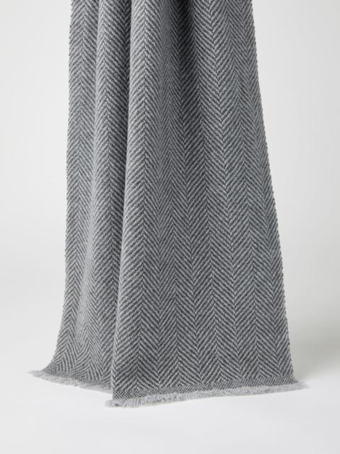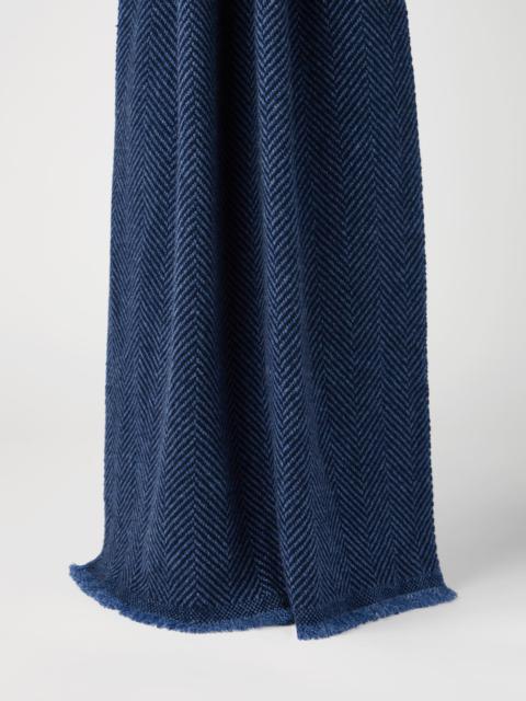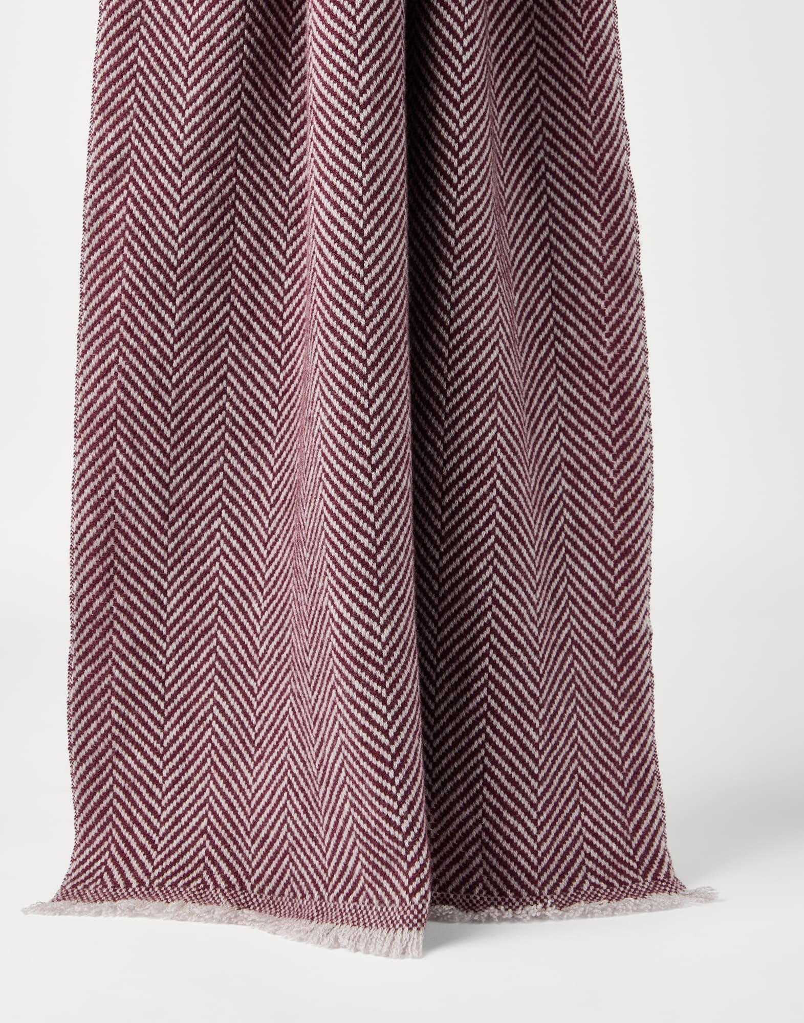 The excellence of Brunello Cucinelli cashmere enhances the essential style of this scarf, providing ideal comfort and protection during the colder months. The distinct chevron weave defines the accessory's sartorial inspiration, completed with fringed edges. MATERIALS The accessory is crafted in premium cashmere to provide a special soft and cozy sensation when worn. DETAILS Plain stitch Scarf measures approx. 45 cm (17,72") x 140 cm (55,12") 100% CASHMERE