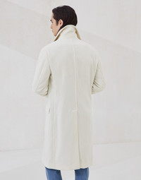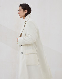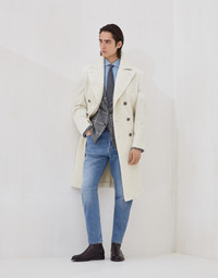 The excellence of Brunello Cucinelli materials adds an elegant feel to the distinctive silhouette of this one-and-a-half-breasted coat with peak lapels, made in wide wale corduroy. The cashmere’s light, soft fibers enrich the sporty character of this fabric, in delicate contrast with the six metal buttons. The fit falls straight down the body with regular, comfortable volume. MATERIALS A versatile icon of the male wardrobe, the sporty wide wale corduroy is enriched with the natural properties of cashmere, giving the fabric a soft, fluid hand. The ultra-lightweight cupro lining provides the garment with added comfort. DETAILS Metal button closure Lapel collar Upper welt pockets Patch hand pockets with flap Half-lined Two interior pockets with button and pen holder Single back vent 100% CASHMERE
