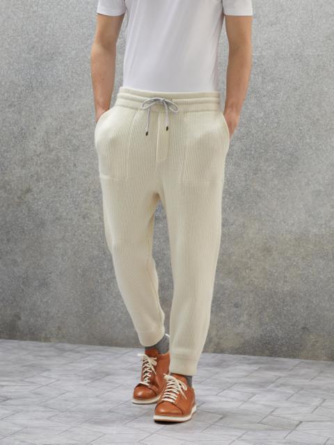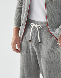 Traditional workmanship, sporty styling and modern comfort come together to enrich moments of relaxation and leisure time with the cozy sensations of knitwear. These cashmere knit pants from the Travelwear line offer a soft-to-the-touch feel and protection and are characterized by an English rib knit texture highlighting their casual flair. MATERIALS The noble cashmere fiber is characterized by an extreme fineness and also for its precious insulating qualities which guarantee warmth, providing coverage and lightness when worn. DETAILS Elastic waistband with drawstring Front pockets Back patch pockets English rib 100% CASHMERE