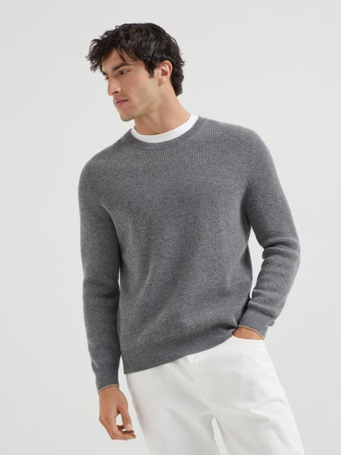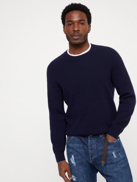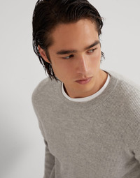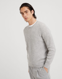 The precious touch of cashmere enhances the classic silhouette of this crew-neck sweater. The softness of the natural yarns enrich the traditional English rib texture, while contrast trims, which characterize the edges of the cuffs, add an iconic Brunello Cucinelli detail. Lightweight and cozy, the sweater features a regular and comfortable fit. MATERIALS The noble cashmere fiber is characterized by an extreme fineness and also for its precious insulating qualities which guarantee warmth, providing coverage and lightness when worn. DETAILS Crew-neck in rib knit English rib 100% CASHMERE