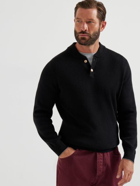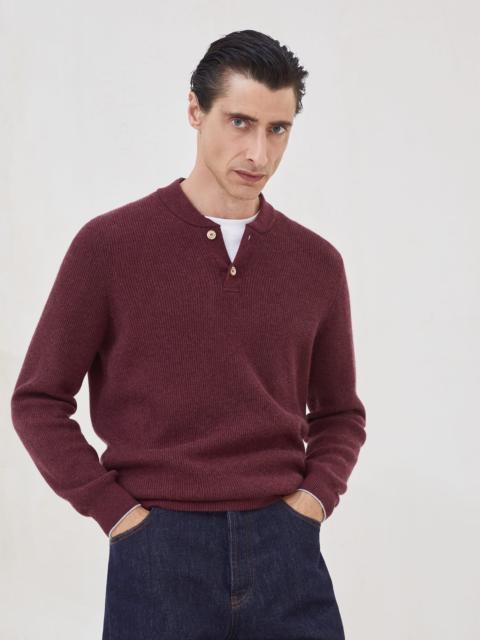 The classic feel of knitwear is paired with the excellence of Brunello Cucinelli yarns and an essential silhouette in this Henley collar sweater, completed with a two-button opening. The rib knitting brings to life the soft, cozy texture of the pure cashmere garment, which features a regular, comfortable fit. MATERIALS The noble cashmere fiber is characterized by an extreme fineness and also for its precious insulating qualities which guarantee warmth, providing coverage and lightness when worn. DETAILS Henley collar in rib knit Button opening Regular shoulder Rib knit cuffs and bottom band English rib 100% CASHMERE