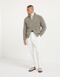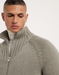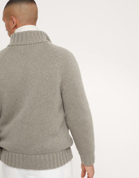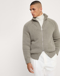 Refined cashmere Feather yarn enhances the versatile style of this down-filled outerwear jacket, an ideal piece for the transitioning into colder seasons. The distinct wide rib knit high collar highlights the natural texture of the yarn. A thin, premium down and feather fill perfects the garment’s comfort and warmth. MATERIALS Refined Feather cashmere is a soft and lightweight yarn, made up of a tubular structure that enriches its full effect to enhance the soft and cozy hand of the natural fiber. The high-quality goose down and feather fill is paired with a lightweight nylon lining. All of the padding used comes exclusively from European suppliers who are members of the EDFA (European Down and Feather Association), guaranteeing animal and environmental welfare. DETAILS Two-way zip closure Rib knit collar Raglan sleeve Hand pockets with zipper Rib knit cuffs and bottom band Two interior pockets with button closure and pen holder Water-resistant nylon lining High quality goose down fill 100% CASHMERE