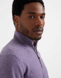 Refined pure cashmere yarn, iconic to Brunello Cucinelli collections, elevates the style of this turtleneck sweatshirt. Contrast color details on the half-zipper and cuff edges add a sophisticated touch to the garment, which offers a regular fit with proportions that remain close to the body. MATERIALS The noble cashmere fiber is characterized by an extreme fineness and also for its precious insulating qualities which guarantee warmth, providing coverage and lightness when worn. DETAILS Zip opening High collar in rib knit Rib knit cuffs and bottom band Plain stitch 100% CASHMERE