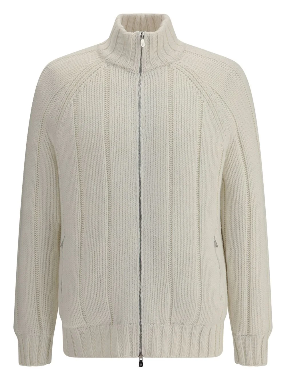 ribbed zip-front cashmere cardigan Highlights - Off-white - Ribbed collar - Double slider zip fastening - Vertical ribbed panels - Welt pockets Made in Italy Composition Cashmere 100% Washing instructions Read Manufacturer Guidelines
