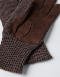 The beauty of Brunello Cucinelli materials enriches the style of these cashmere gloves with a suede palm, a warm, comfortable accessory for complete protection at the coldest times of the season. The rib knit cuffs add an elegant, stylish detail. MATERIALS The soft, pure cashmere knit is paired with the velvety texture of the suede used for the palm. DETAILS Reinforced palm Rib knit wrist Unlined 100% CASHMERE