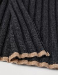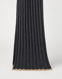 The superior qualities of cashmere enrich this scarf with comfort and lightness to provide the right amount of protection. Traditional rib knitting is paired with a contrast color stripe that stands out on the edges of the short side. MATERIALS The noble cashmere fiber is characterized by an extreme fineness and also for its precious insulating qualities which guarantee warmth, providing coverage and lightness when worn. DETAILS Scarf measures approx. 30 cm (11,81") x 167 cm (65,75") 100% CASHMERE