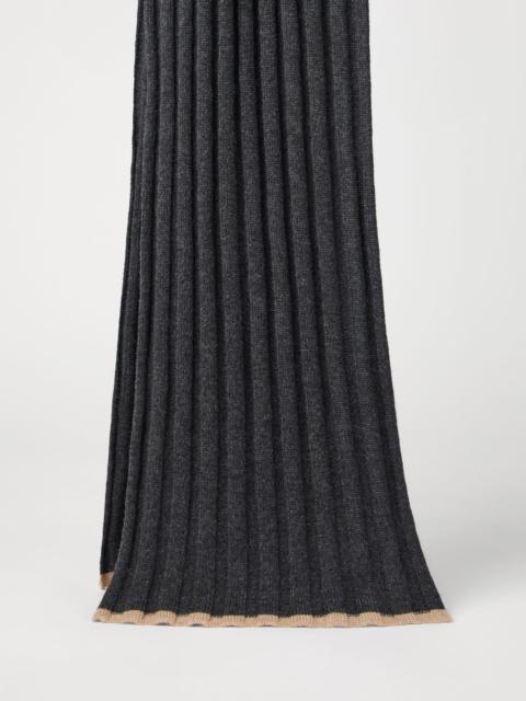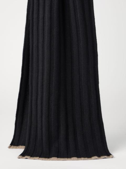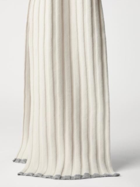The superior qualities of cashmere enrich this scarf with comfort and lightness to provide the right amount of protection. Traditional rib knitting is paired with a contrast color stripe that stands out on the edges of the short side. MATERIALS The noble cashmere fiber is characterized by an extreme fineness and also for its precious insulating qualities which guarantee warmth, providing coverage and lightness when worn. DETAILS Scarf measures approx. 30 cm (11,81") x 167 cm (65,75") 100% CASHMERE