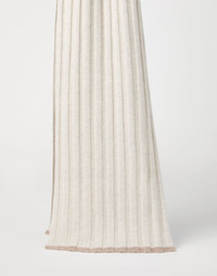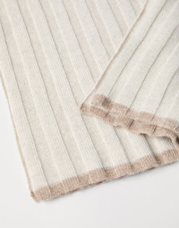 The superior qualities of cashmere enrich this scarf with comfort and lightness to provide the right amount of protection. Traditional rib knitting is paired with a contrast color stripe that stands out on the edges of the short side. MATERIALS The noble cashmere fiber is characterized by an extreme fineness and also for its precious insulating qualities which guarantee warmth, providing coverage and lightness when worn. DETAILS Scarf measures approx. 30 cm (11,81") x 167 cm (65,75") 100% CASHMERE