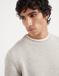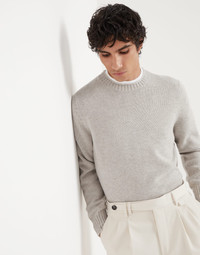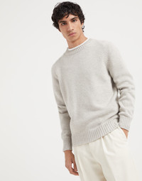 The excellence of natural fibers and the workmanship of Brunello Cucinelli knitwear are paired with the versatility of this long sleeve crew-neck sweater. The knitted pure cashmere yarn provides lightness and a soft hand to the classic, casual menswear piece. The fit offers regular, comfortable proportions. MATERIALS The noble cashmere fiber is characterized by an extreme fineness and also for its precious insulating qualities which guarantee warmth, providing coverage and lightness when worn. DETAILS Rib knit crewneck English rib 100% CASHMERE