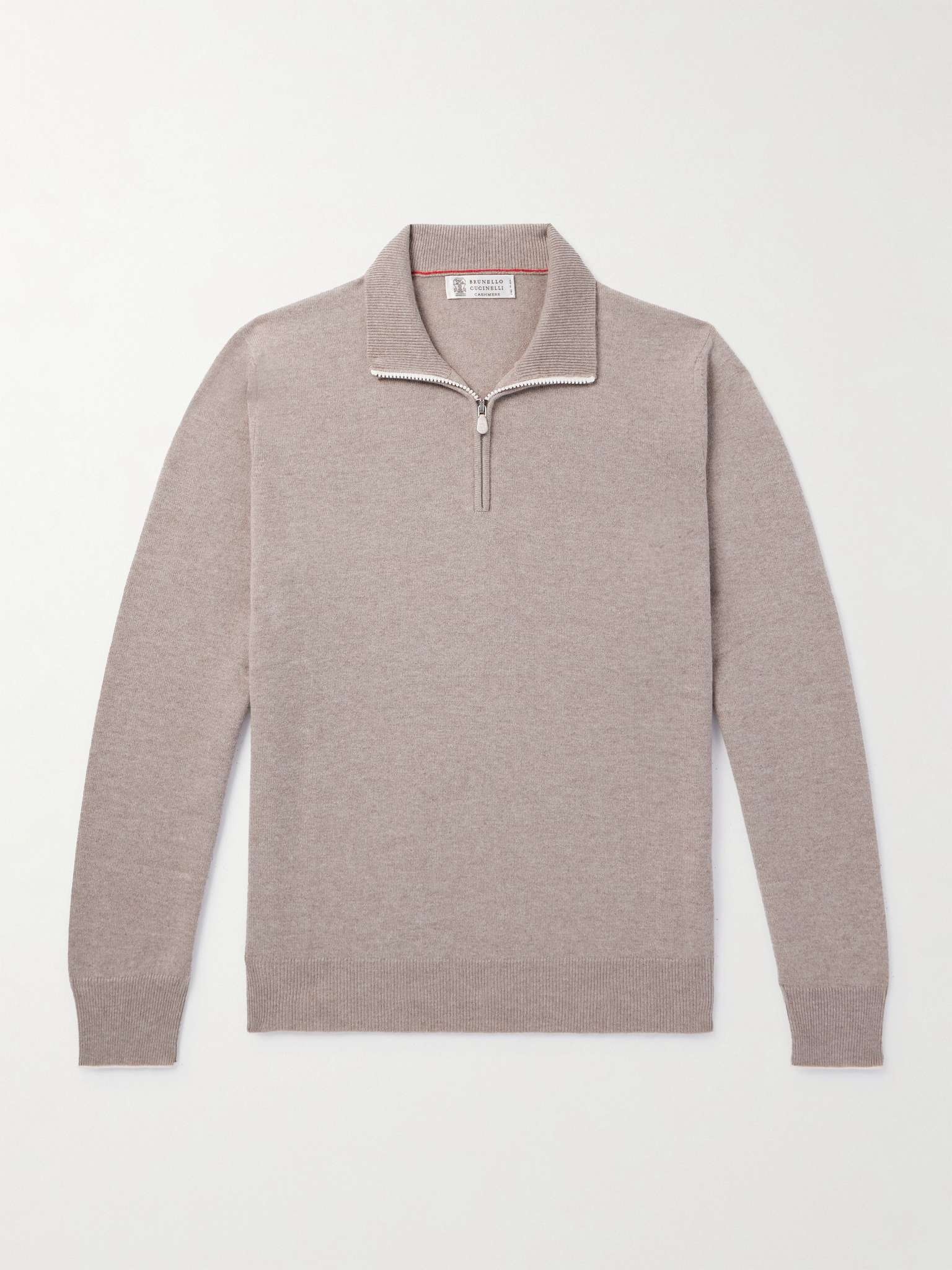 Brunello Cucinelli isn't nicknamed the 'king of cashmere' for no reason - the designer carefully selects the yarns used in pieces like this sweater for the utmost softness and strength. Made in Italy, it's designed to be worn fitted, so you can layer it under a jacket, and has a half-zip fastening that's great for a bit of extra ventilation. Size & Fit - Fits true to size. Take your normal size - Designed for a regular fit - Lightweight knit - Model is shown wearing an IT 48 Details & Care - Mushroom melange cashmere - Zip fastening - 100% cashmere - Hand wash