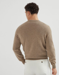 The iconic yarn of the Brunello Cucinelli collections enriches the essential, timeless look of this pure cashmere sweater. The rib knit edges of the crew-neck, cuffs and bottom band give the garment a sporty touch. The fit provides regular proportions through the chest and the sleeves. MATERIALS The noble cashmere fiber is characterized by an extreme fineness and also for its precious insulating qualities which guarantee warmth, providing coverage and lightness when worn. DETAILS Crew-neck in rib knit Rib knit cuffs and bottom band Plain stitch 100% CASHMERE
