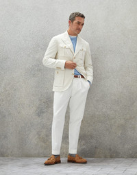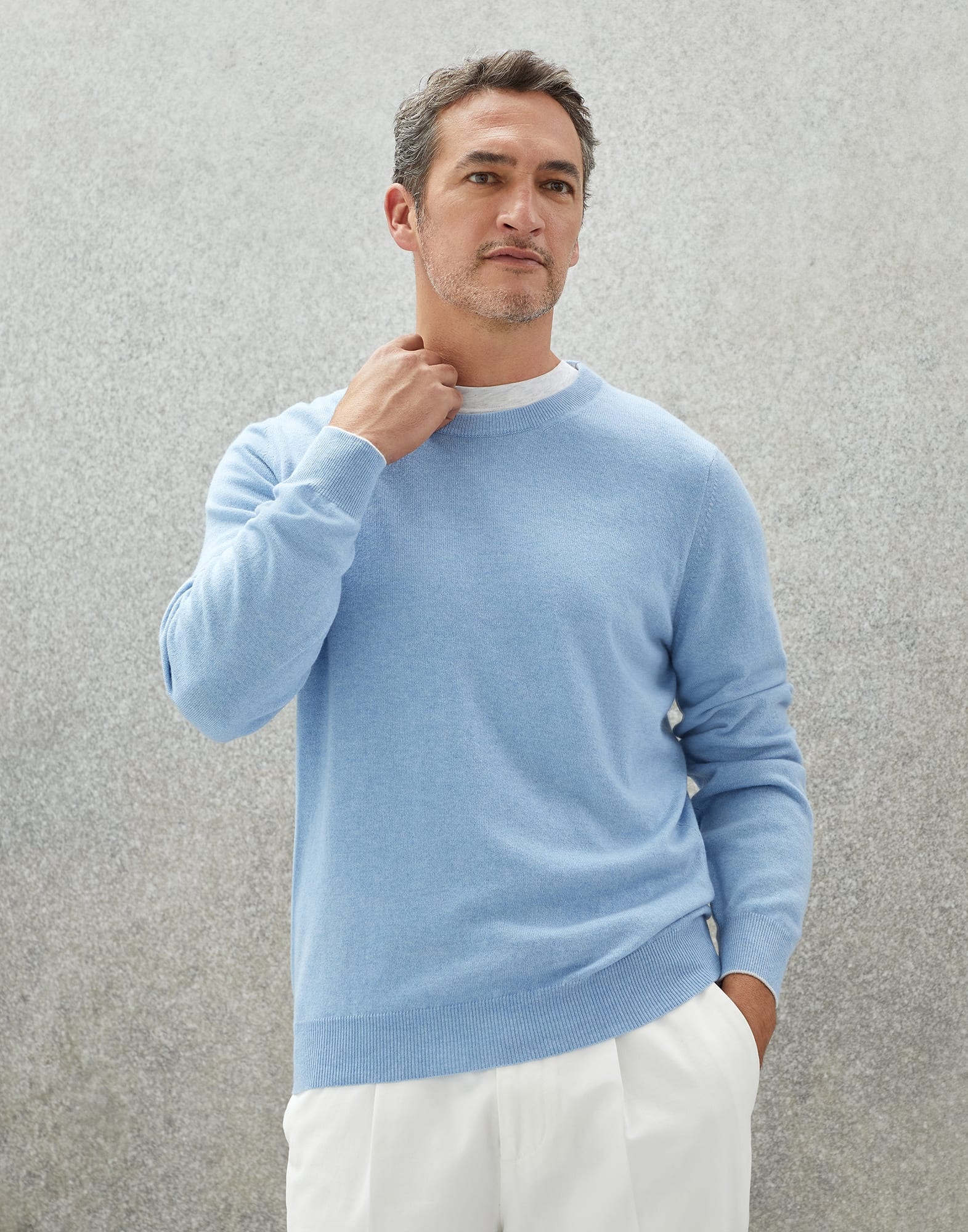 A timeless classic, this pure cashmere sweater represents an icon of the Brunello Cucinelli collections. The natural cashmere fiber’s superior quality enhances its comfortable fit, which is both lightweight and cozy. The contrast color edges of the cuffs and the inside of the crew-neck complete the style of this garment with refined details. MATERIALS The noble cashmere fiber is characterized by an extreme fineness and also for its precious insulating qualities which guarantee warmth, providing coverage and lightness when worn. DETAILS Crew-neck in rib knit Rib knit cuffs and bottom band Plain stitch 100% CASHMERE
