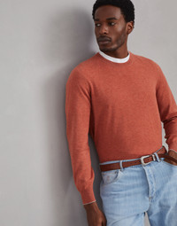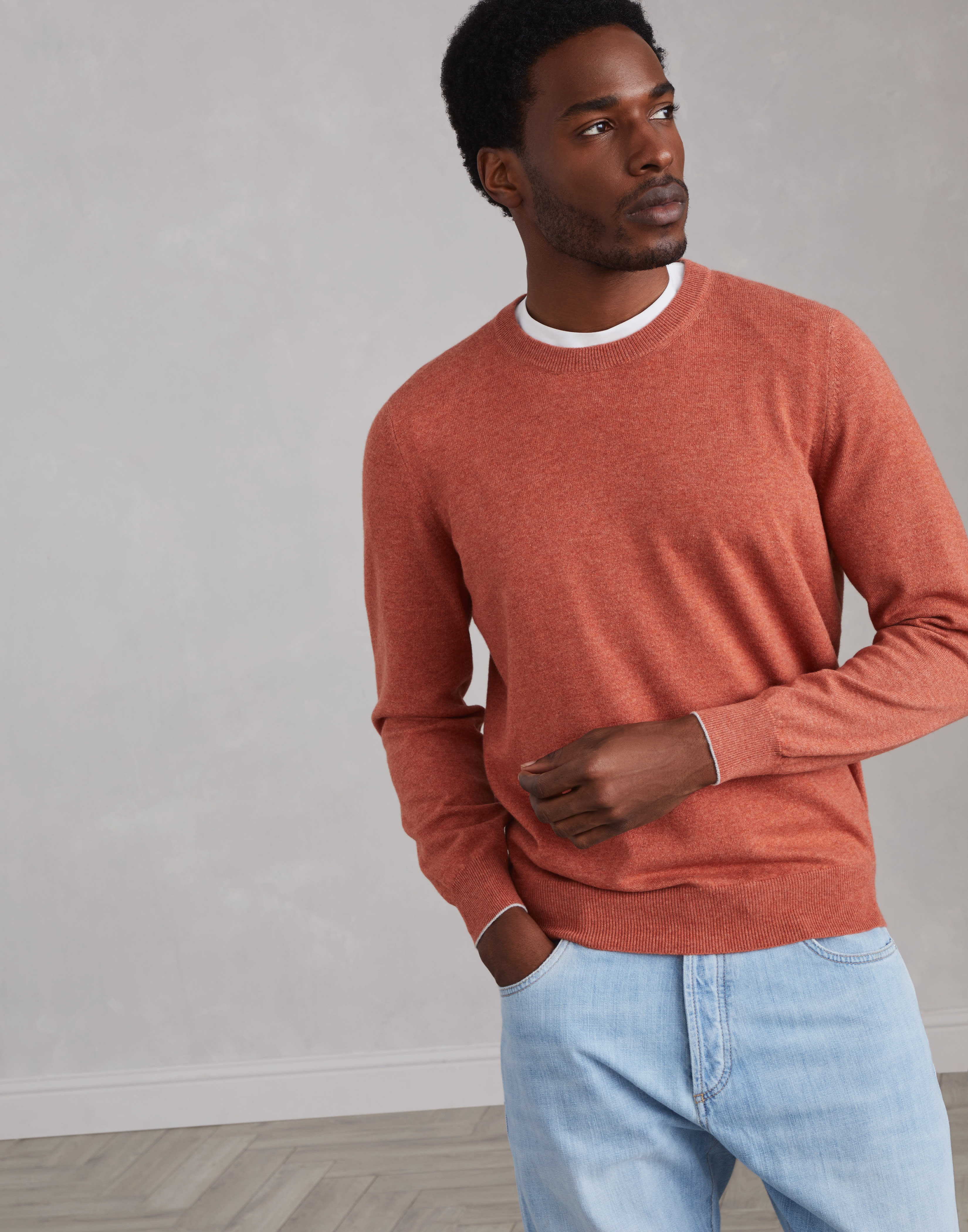 A timeless classic, this pure cashmere sweater represents an icon of the Brunello Cucinelli collections. The natural cashmere fiber’s superior quality enhances its comfortable fit, which is both lightweight and cozy. The contrast color edges of the cuffs and the inside of the crew-neck complete the style of this garment with refined details. MATERIALS The noble cashmere fiber is characterized by an extreme fineness and also for its precious insulating qualities which guarantee warmth, providing coverage and lightness when worn. DETAILS Crew-neck in rib knit Rib knit cuffs and bottom band Plain stitch 100% CASHMERE