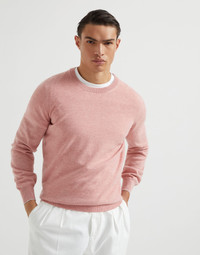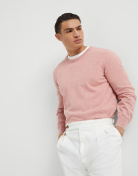 A timeless classic, this pure cashmere sweater represents an icon of the Brunello Cucinelli collections. The natural cashmere fiber’s superior quality enhances its comfortable fit, which is both lightweight and cozy. The contrast color edges of the cuffs and the inside of the crew-neck complete the style of this garment with refined details. MATERIALS The noble cashmere fiber is characterized by an extreme fineness and also for its precious insulating qualities which guarantee warmth, providing coverage and lightness when worn. DETAILS Crew-neck in rib knit Rib knit cuffs and bottom band Plain stitch 100% CASHMERE