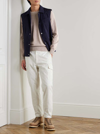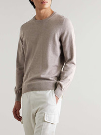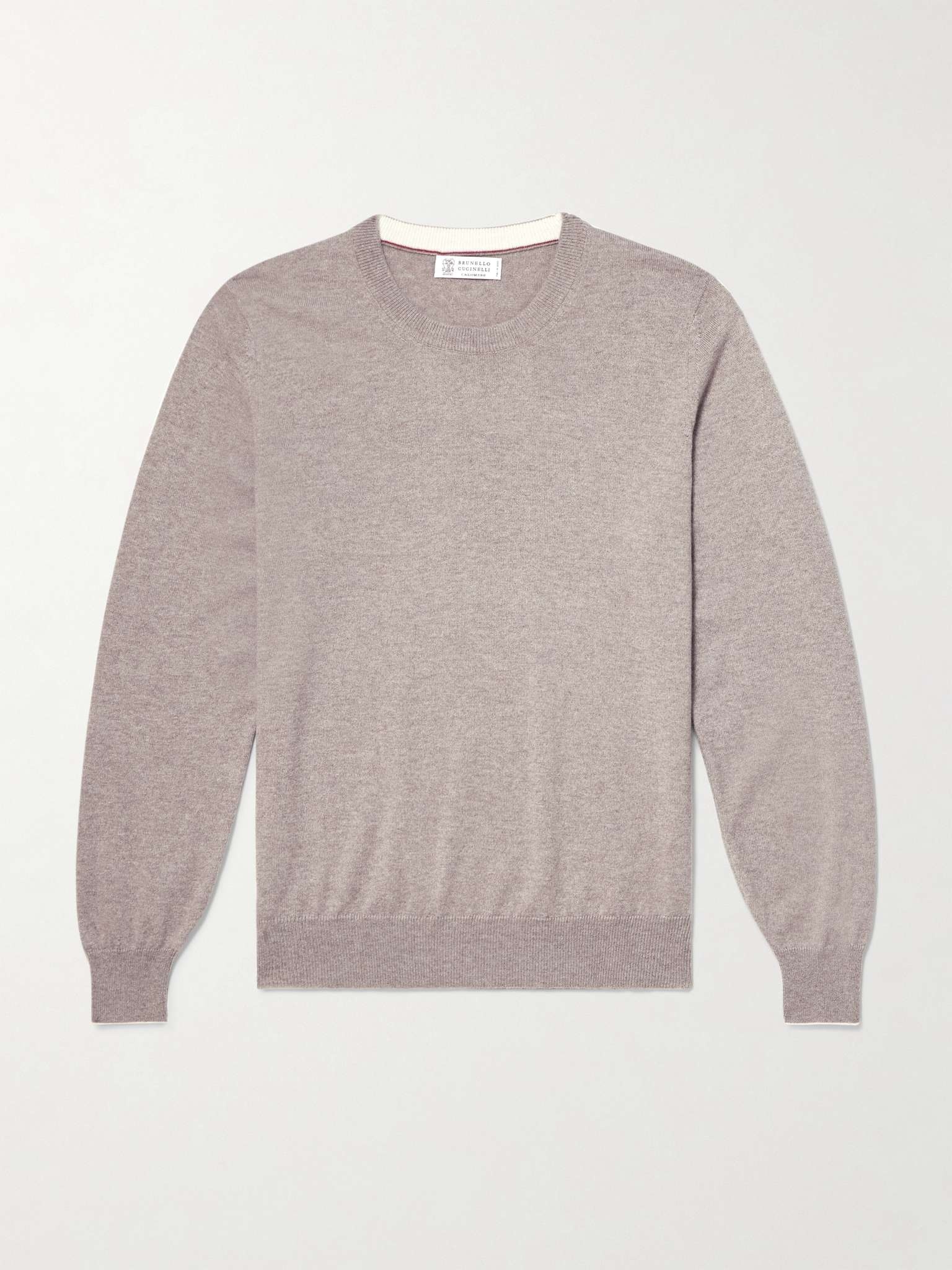 Dubbed the 'king of cashmere', Brunello Cucinelli has transformed the way we shop for knitwear. This sweater has been knitted from the soft yarns in Solomeo, Italy – where all the label's collections are produced – and designed to be worn fitted. It's tipped with white trims for a subtle contrast. Size & Fit - Fits true to size. Take your normal size - Designed for a slightly loose fit - Lightweight knit - Model is shown wearing an IT 48 Details & Care - Beige melange and white cashmere - 100% cashmere - Hand wash