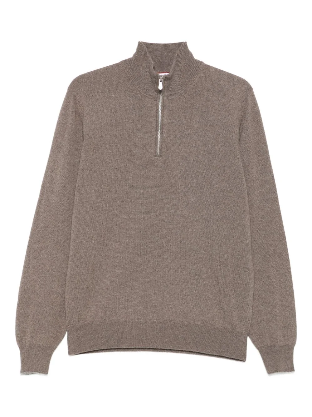 cashmere sweater Highlights - Brown - Cashmere - Half zip fastening - Mock neck - Long sleeves - Ribbed cuffs and hem Made in Italy Composition Cashmere 100% SIZE & FIT Model measurements Height 6 ft 2 in(1.88 m) Bust/Chest 36.61 in(93 cm) Hips 35.82 in(91 cm) Waist 27.95 in(71 cm) Washing instructions Read Manufacturer Guidelines