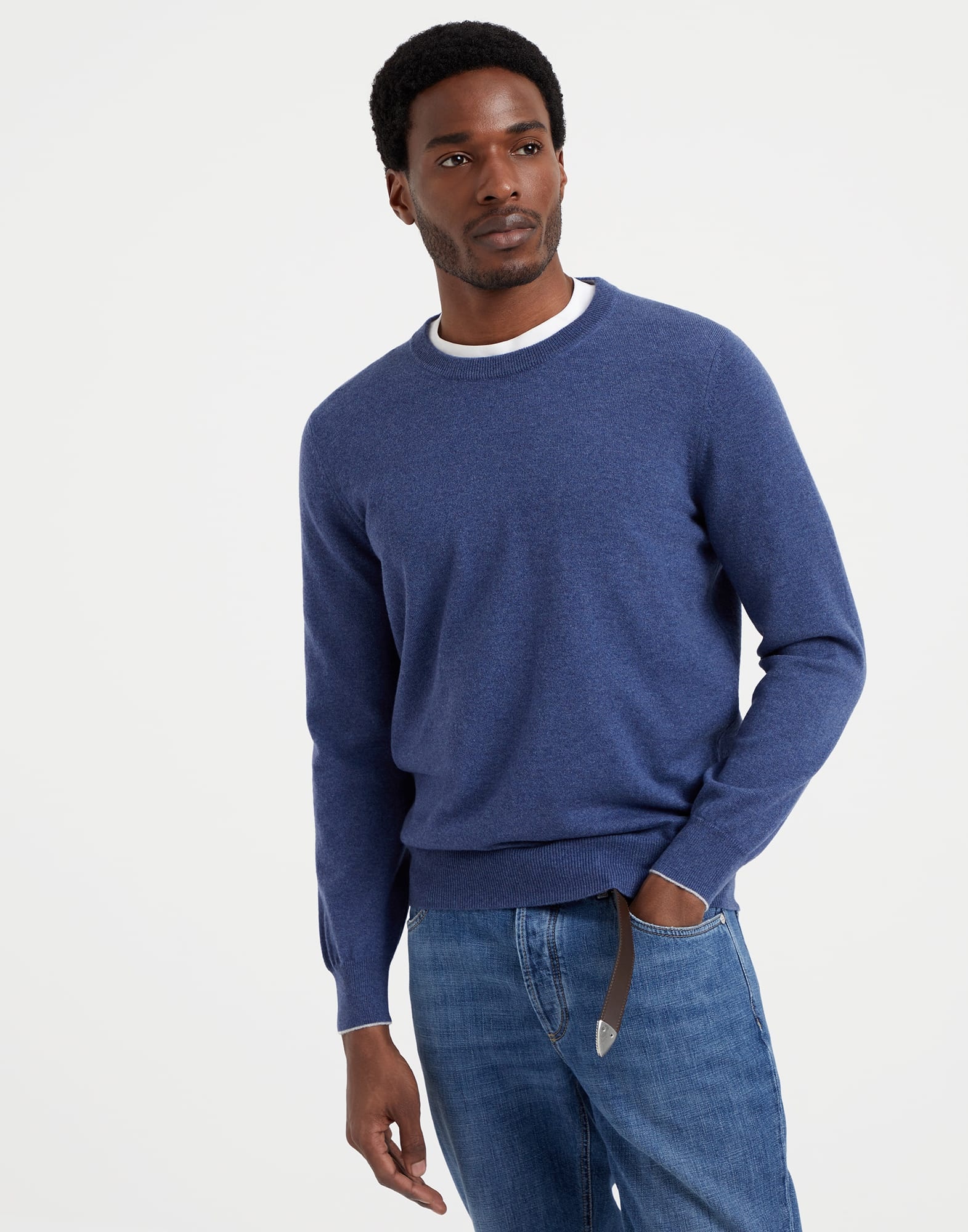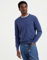 A timeless classic, this pure cashmere sweater represents an icon of the Brunello Cucinelli collections. The natural cashmere fiber’s superior quality enhances its comfortable fit, which is both lightweight and cozy. The contrast color edges of the cuffs and the inside of the crew-neck complete the style of this garment with refined details. MATERIALS The noble cashmere fiber is characterized by an extreme fineness and also for its precious insulating qualities which guarantee warmth, providing coverage and lightness when worn. DETAILS Crew-neck in rib knit Rib knit cuffs and bottom band Plain stitch 100% CASHMERE