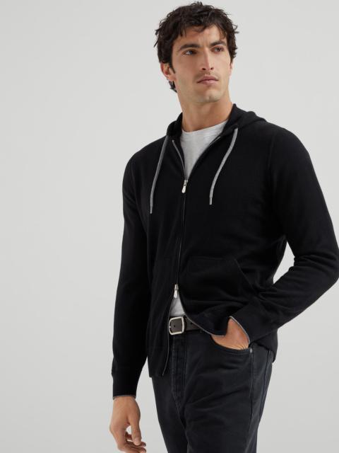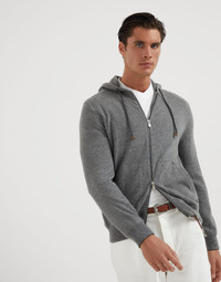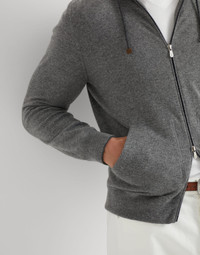 Inspired by the sporty styling of Active apparel, the pure cashmere cardigan is enriched with refined Brunello Cucinelli materials. The zipper closure and rib knit cashmere details on the cuffs and bottom band complete the garment. MATERIALS The noble cashmere fiber is characterized by an extreme fineness and also for its precious insulating qualities which guarantee warmth, providing coverage and lightness when worn. DETAILS Two-way zip closure Adjustable drawstring hood Patch hand pockets Rib knit cuffs and bottom band Plain stitch 100% CASHMERE