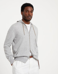 Inspired by the sporty styling of Active apparel, the pure cashmere cardigan is enriched with refined Brunello Cucinelli materials. The zipper closure and rib knit cashmere details on the cuffs and bottom band complete the garment. MATERIALS The noble cashmere fiber is characterized by an extreme fineness and also for its precious insulating qualities which guarantee warmth, providing coverage and lightness when worn. DETAILS Two-way zip closure Adjustable drawstring hood Patch hand pockets Rib knit cuffs and bottom band Plain stitch 100% CASHMERE