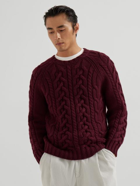 Retro inspiration and a casual feel define the silhouette of this cashmere Feather yarn turtleneck sweater. The natural fibers are characterized by a particular structure that makes them full and soft, providing body and support to the classic cable knit that runs across the garment. The fit is regular and comfortable in the torso and the sleeves. MATERIALS Refined cashmere Feather yarn is soft and lightweight. It features a tubular structure that increases volume and enhances the plush effect of the natural fibers. DETAILS High turned-down collar Raglan sleeve Rib knit cuffs and bottom band Cable knit 100% CASHMERE