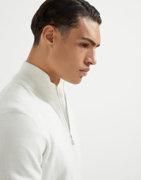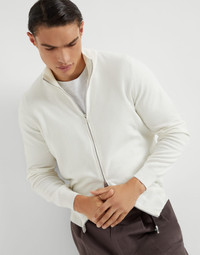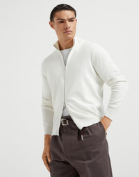 A men's wardrobe must-have, this pure cashmere cardigan is ideal for enriching outfits with a casual and elegant style. Contrast color inserts on the cuff edges add sophisticated touches to the garment's classic volumes. The item offers a regular fit. MATERIALS The noble cashmere fiber is characterized by an extreme fineness and also for its precious insulating qualities which guarantee warmth, providing coverage and lightness when worn. DETAILS Two-way zip closure High collar in rib knit Rib knit cuffs and bottom band Plain stitch 100% CASHMERE