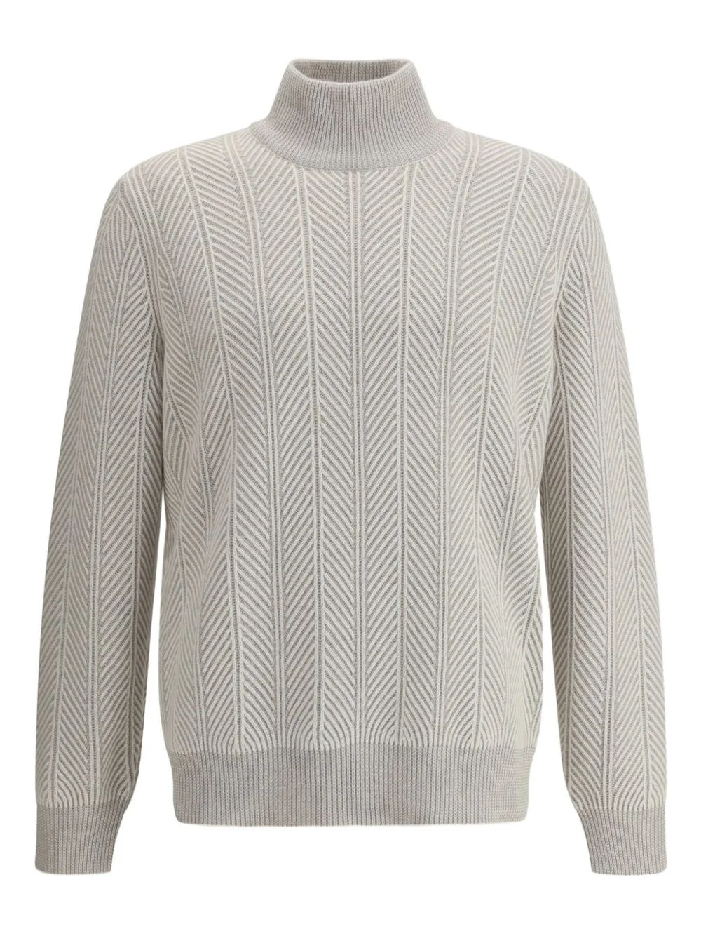 herringbone turtleneck sweater Highlights - Light grey - Herringbone pattern - Ribbed turtleneck - Ribbed cuffs - Ribbed hem - Cashmere Made in Italy Composition Cashmere 100% Washing instructions Read Manufacturer Guidelines