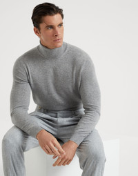 The excellence of Brunello Cucinelli materials enriches the classic lines of the pure cashmere turtleneck sweater. Contrast color details on the edges of the cuffs add a sophisticated element to the garment’s style, which is characterized by a regular fit and proportions that remain close to the body. MATERIALS Fine two-ply cashmere fiber lends the perfect weight to the garment and guarantees comfort. DETAILS High collar in rib knit Rib knit cuffs and bottom band Plain stitch 100% CASHMERE