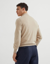 Refined pure cashmere yarn, iconic to Brunello Cucinelli collections, elevates the style of this turtleneck sweatshirt. Contrast color details on the half-zipper and cuff edges add a sophisticated touch to the garment, which offers a regular fit with proportions that remain close to the body. MATERIALS The noble cashmere fiber is characterized by an extreme fineness and also for its precious insulating qualities which guarantee warmth, providing coverage and lightness when worn. DETAILS Zip opening High collar in rib knit Rib knit cuffs and bottom band Plain stitch 100% CASHMERE