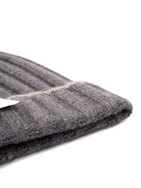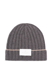 ribbed-knit beanie Highlights - Grey - Turned-up cuff - Contrasting stitch detail - Logo patch - Stretch fit Made in Italy Composition Cashmere 100% Washing instructions Read Manufacturer Guidelines