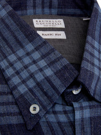 checked shirt Highlights - Indigo blue - Front button fastening - Button-down collar - Buttoned cuffs - Long sleeves Made in Italy Composition Linen/Flax 100% Washing instructions Read Manufacturer Guidelines