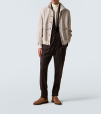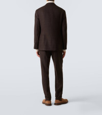 Made from wool, cashmere, and silk twill, this checked suit from Brunello Cucinelli exudes utmost sophistication. The single-breasted blazer features a straight silhouette and notch lapels, destined to be a timeless staple in your wardrobe. Product Details - Material: 95% wool, 3% cashmere, 2% silk - Care instructions: dry clean - Made in Italy - Designer color name: C022 - Item color: brown - Contains non-textile parts of animal origin - Closure: single-breasted (three buttons), zipper fly, button and hook fastenings - Notched lapel - Partially lined - Pockets: flap pockets, angled chest pocket, internal pockets - Cuff: four buttons - Vent: double - Adjustable tabs at the waist - Two-piece set - Item number: P01055996 Size & Fit - True to size - Short sizing - Regular fit - Adjustable at the waist - Non-stretchy fabric - Falls below the hip - Slim-leg - slit length 24cm-9.5" - Height of model is 188cm-74" and wears a size IT 50
