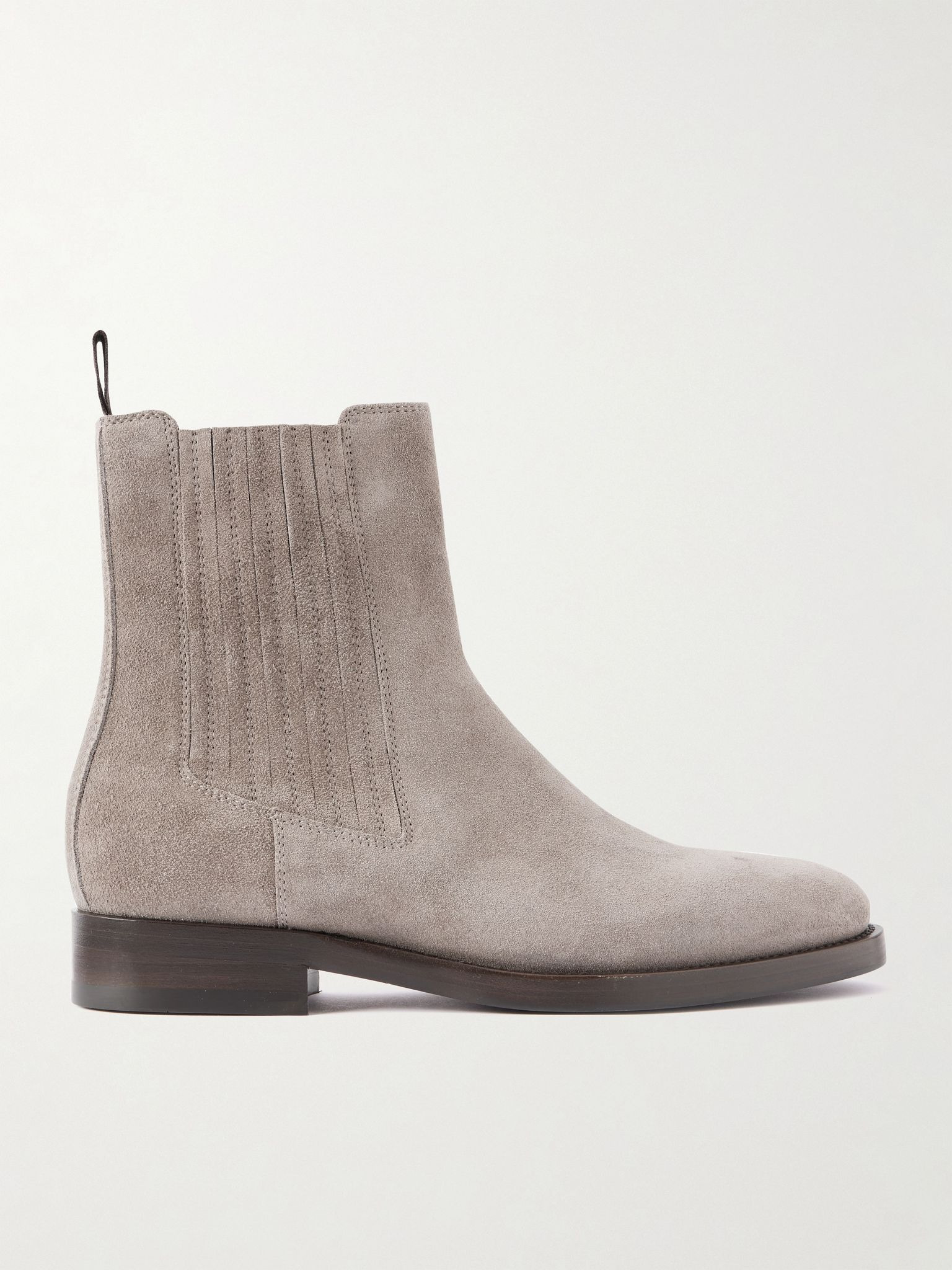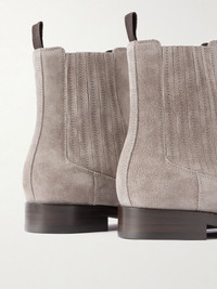The 'Beatles' namesake of Brunello Cucinelli's Chelsea boots offers some insight to the inspiration behind the design. They're made from plush suede with elasticated gussets for comfort and rest on rubber soles with slight block heels. Size & Fit - Fits true to size. Take your normal size - European sizing Details & Care - Taupe suede (Calf)