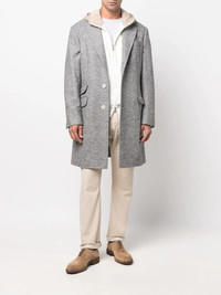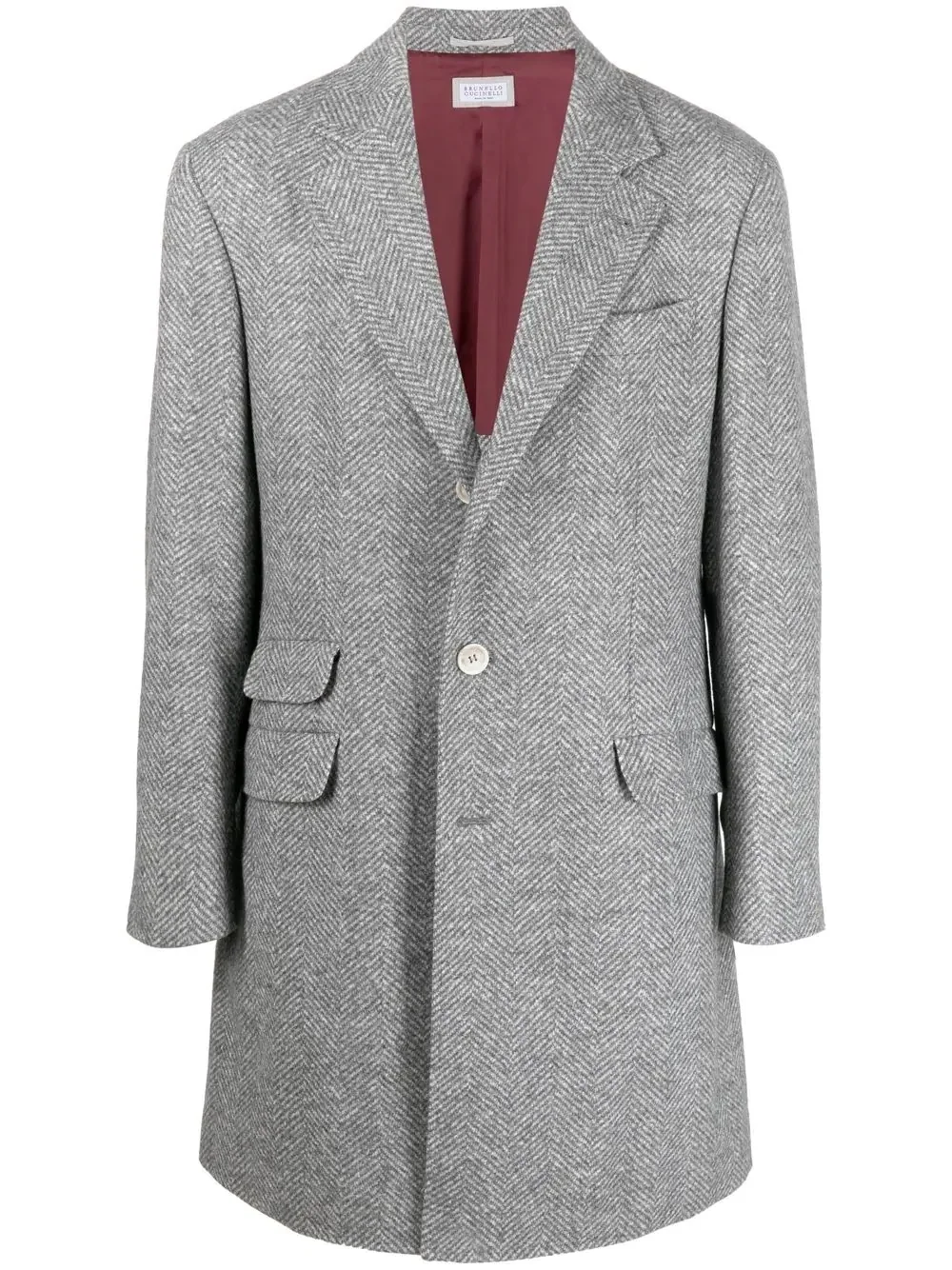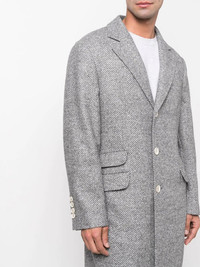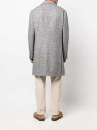 chevron-knit single-breasted coat grey virgin wool-alpaca blend cotton notched collar front button fastening long sleeves chest welt pocket two front flap pockets mid-length Made in Italy Composition Outer: Virgin Wool 43%, Alpaca 37%, Polyamide 20% Lining: Cotton 100%, Cupro 100% SIZE & FIT Model measurements Height 6 ft 1 in(1.85 m) Bust/Chest 37.79 in(96 cm) Hips 37.4 in(95 cm) Waist 30.7 in(78 cm) Washing instructions Dry Clean Only