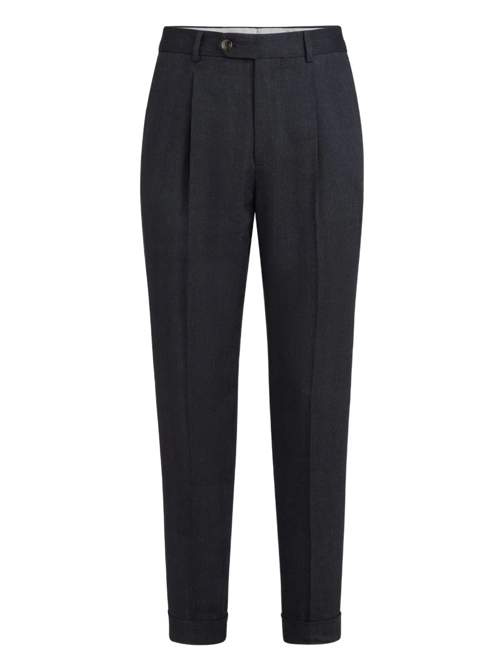 chevron pleated trousers Highlights - Grey - Chevron pattern - Pleat detailing - Button fastening - Belt loops - Turn-up hem Made in Italy Composition Outer: Linen/Flax 60%, Virgin Wool 40% Lining: Cupro 100% Washing instructions Read Manufacturer Guidelines