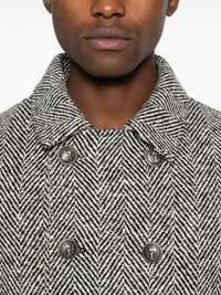 chevron virgin wool peacoat Highlights - Black/white - Virgin wool - Chevron knit - Double-breasted button fastening - Classic collar - Long sleeves - Two side jetted pockets - English rear vents - Satin lining - Straight hem Made in Italy Composition Outer: Virgin Wool 100% Lining: Cupro 100%, Cotton 100% SIZE & FIT Model measurements Height 6 ft 2 in(1.88 m) Bust/Chest 36.61 in(93 cm) Hips 35.82 in(91 cm) Waist 27.95 in(71 cm) FittingInformation Designed for a slim fit, offering a comfortable fit that sits just away from the body The vented hem offers movement at the rear Made from a midweight non-stretch fabric