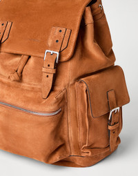 The functional yet refined attitude of this City backpack is paired with the excellence of materials and finishes of Brunello Cucinelli leather goods. The suede, velvety and shimmering in appearance, enhances the accessory’s careful balance of proportions. The numerous external pockets ensure practicality and comfort. MATERIALS The soft suede features a shimmering, slightly irregular texture, enriched with water and stain-resistant treatments that help preserve the leather’s quality. The water-resistant fabric lining completes the accessory. DETAILS Flap closure with adjustable straps Adjustable shoulder straps Handle Outside zipper pocket Side pockets with flap Internal compartment with magnet Internal pocket with button closure Internal pocket Strap on back for attaching to trolley handle All metal parts are Nickel-free The accessory is approximately 36 cm (14.17") long, 45 cm (17.72") high, and 22 cm (8.66") wide REAL LEATHER