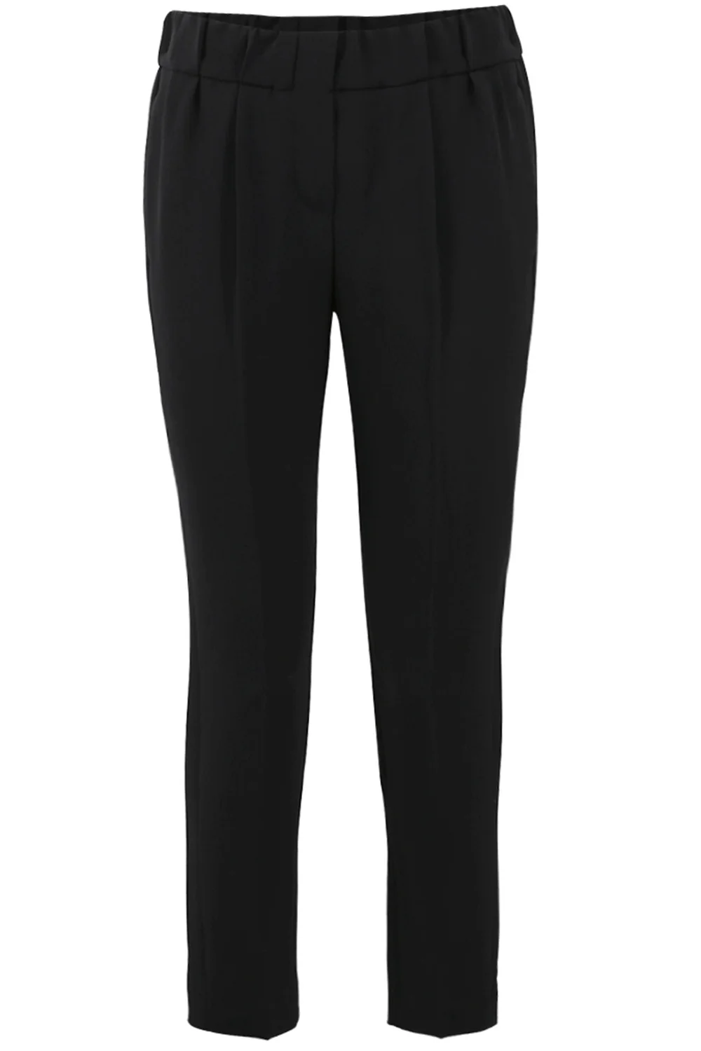 DETAILS AND INSIGHT Silk Crepe Pull-On Pant Mid-Rise Waistline With Elastic Waistband, Faux Fly And Button Detail, Front Pleats Two Front Pockets And Two Back Trouser Pockets, Loose-Fitting Silhouette And Cropped Cut 52% Acetate, 48% Silk, Dry Clean Made In Italy With Italian Sizing Available In Black Style MA029P1673-C101