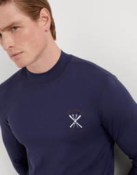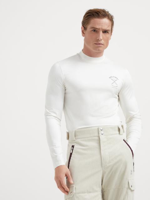The refined qualities of Brunello Cucinelli materials enrich this long sleeve crew-neck T-shirt, inspired by technical sportswear. Featuring a winter-themed embroidery, the silk jersey T-shirt is versatile and comfortable thanks to its regular fit. MATERIALS The qualities of silk elevate the versatile and comfortable style of jersey, lending it a smooth, fluid and soft effect. A very small percentage of elastic fiber provides added comfort. DETAILS Crew-neck Flat pressed hem at cuffs and bottom 98% SILK, 2% ELASTANE