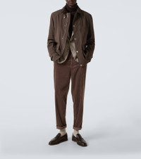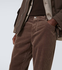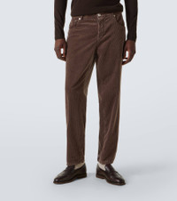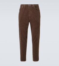 Crafted in Italy from corduroy, these slim pants exude comfort and sophistication. Brunello Cucinelli's designs are created in Solomeo, a medieval hamlet whose art and traditions are woven into the house's every fiber. Product Details - Material: 100% cotton - Care instructions: hand wash - Made in Italy - Designer color name: C6025 - Item color: brown - Details: 100% calf leather - Lining: 100% cotton - Lining II: 58% cotton, 42% polyester - Item number: P01056061 Size & Fit - True to size - Non-stretchy fabric - Slim-leg - The model in the picture is 185cm-6'1" and wearing a size 50
