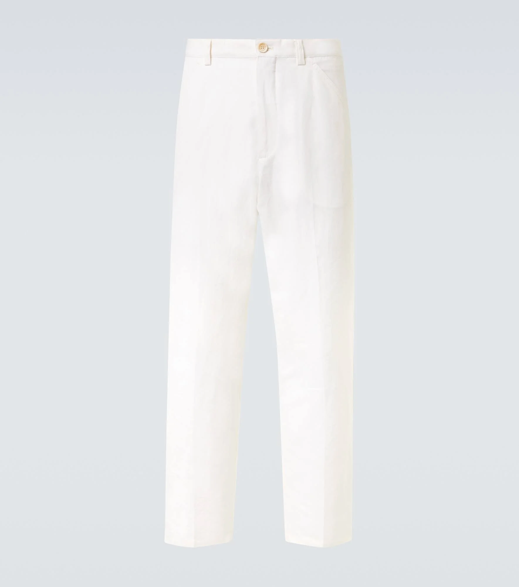 Product Details - Material: 52% cotton, 48% linen - Care instructions: dry clean - Made in Italy - Designer color name: Panama - Item color: ivory - Lining: 100% cotton - Lining II: 100% viscose - Closure: zip and button fastening - Pockets: side slit pockets, back pockets - Item number: P01046347 Size & Fit - True to size - Non-stretchy fabric - Straight leg - The model in the picture is 185cm-6'1" and wearing a size 50