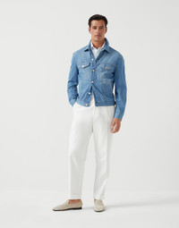A mix of casual style and refined materials, this shirt-collar polo conveys the classic elegance of pique in a contemporary way. The fabric is light and compact, thanks to the natural properties of cotton, enriched with the slight irregularity provided by the linen that enhances the honeycomb texture. The short-sleeve silhouette offers regular, comfortable proportions. MATERIALS The combination of natural cotton and linen fibers creates a lightweight and comfortable fabric characterized by a traditional honeycomb texture. DETAILS Shirt-style collar with button opening Flat pressed hem at cuffs and bottom Side vents at bottom Regular fit 68% COTTON, 32% LINEN
