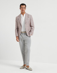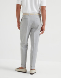 The essential lines of these leisure fit trousers are paired with lightweight, fluid gabardine. The cotton and virgin wool fabric complements and enhances the garment’s casual feel. The modern leisure fit offers soft proportions in the seat and a slight low-rise, while the cut of the leg remains close to the body. MATERIALS The casual, versatile texture of gaberdine is made with cotton and virgin wool threads for a lightweight, compact effect. The knee-length lining provides added comfort. DETAILS Zip closure with button, metal hook and backing button Slanted front pockets Pleat Back welt pockets Plain hem Lining to knee Leisure fit: the rise and seat are soft and the proportions of the leg are tapered 63% COTTON, 37% VIRGIN WOOL