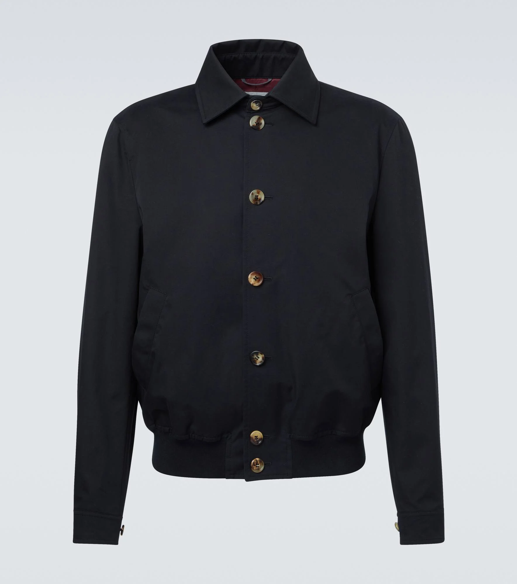 Brunello Cucinelli's designs are created in Solomeo, a medieval hamlet whose art and traditions are woven into the house's every fiber. This jacket is cut from a cotton-blend to a blouson style with a classic collar and an elasticated waistband. Product Details - Material: 67% cotton, 33% polyamide - Care instructions: dry clean - Made in Italy - Color: black - Designer color name: Black - Item color: black - Trim: 100% cotton - Contains non-textile parts of animal origin - Closure: buttoned front - Pockets: welt pockets - Item number: P01138367 Size & Fit - True to size - Straight fit - Elasticated hem - Non-stretchy fabric - Falls to the hip - Height of model is 189cm-74.5" and wears a size IT 50